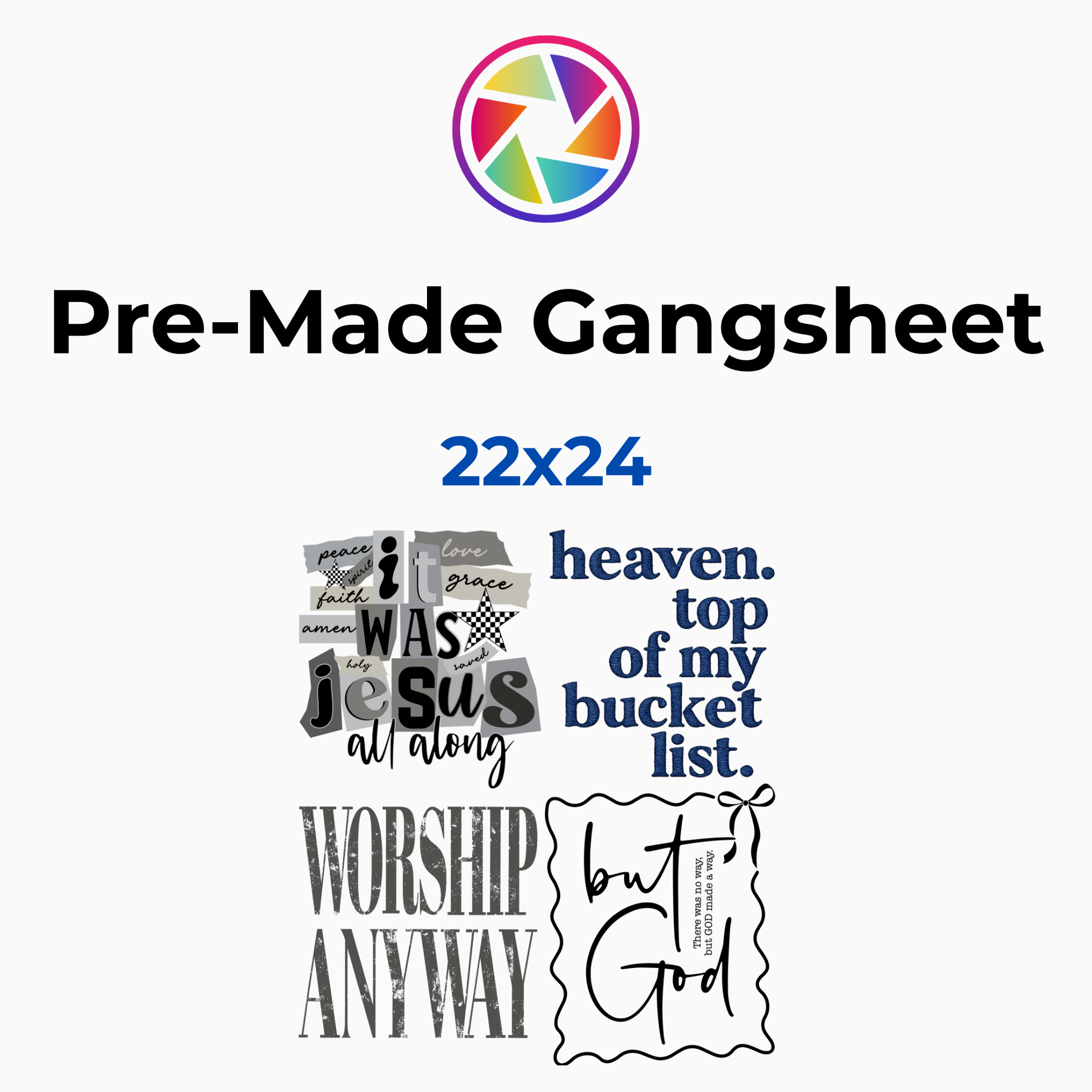 This sheet includes multiple powerful designs centered around worship, perseverance, and unwavering faith — all laid out and ready to press so you can maximize your prints and profits with ease.